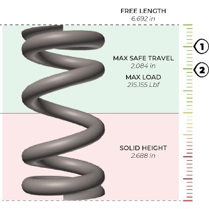 The Custom Spring Load Animator simulates how your spring behaves under various loads. It provides detailed data on load capacity, deflection, and whether the spring can reach its maximum solid height without damage.